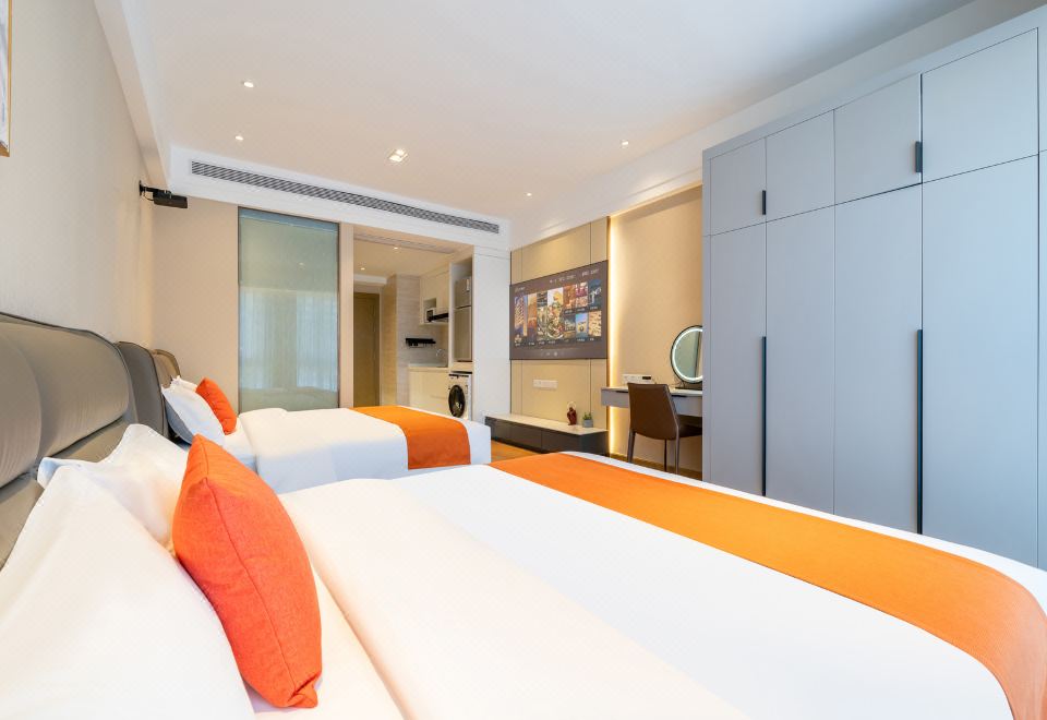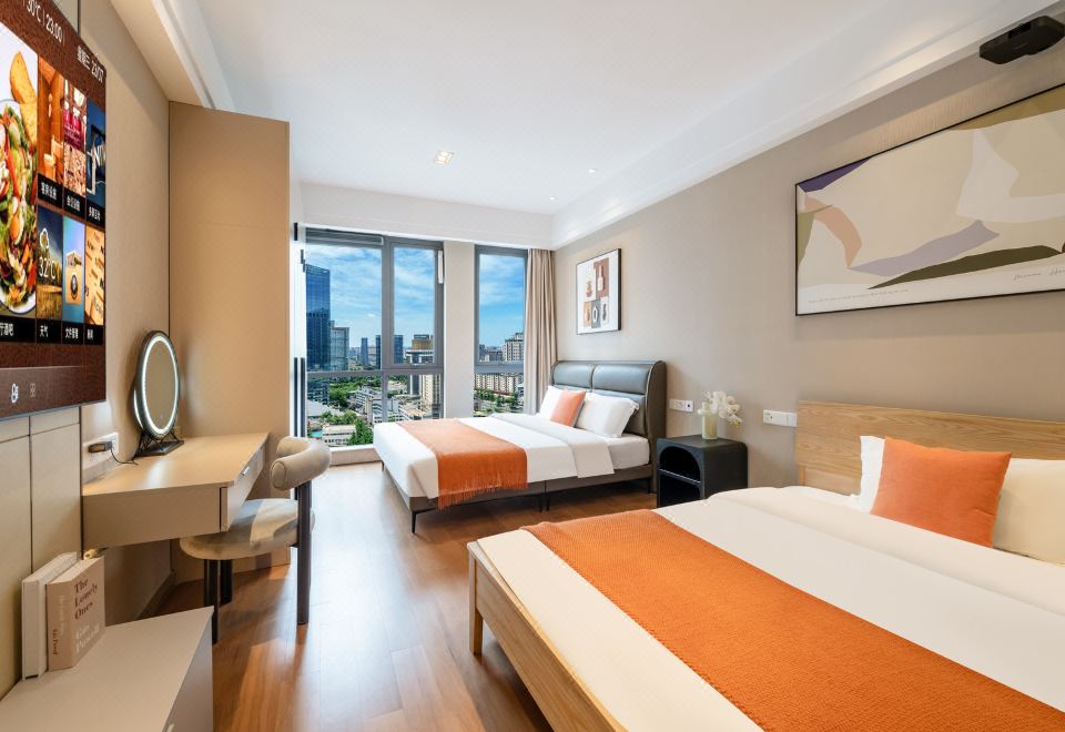 超大双床4人房(落地窗+洗烘机+冰箱+微波炉+投影)