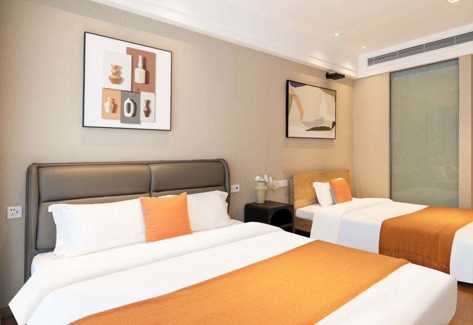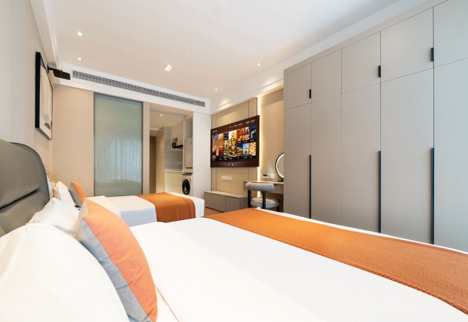 经典双床房(软硬床各1+洗烘机+冰箱+微波炉+落地窗)